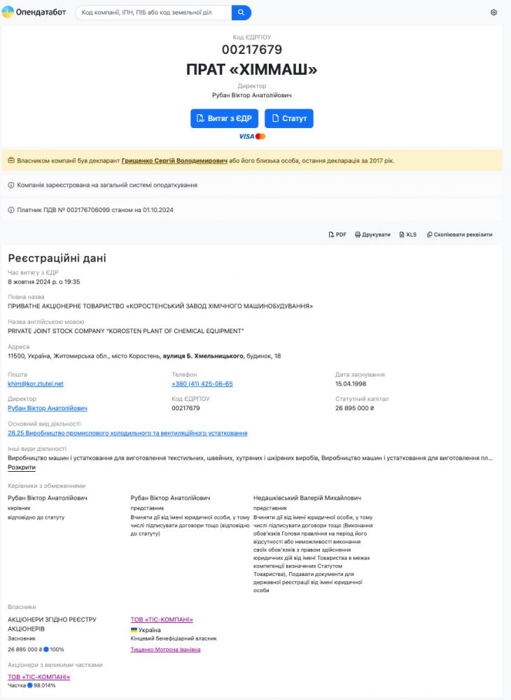 Нагадаємо, головою наглядової ради та справжнім власником «ХІММАШ» залишається Тищенко Сергій Петрович. За даними журналістів, ця компанія активно співпрацює з закордонними підприємствами і опосередковано фінансує війну РФ проти України, про що йтиметься далі.