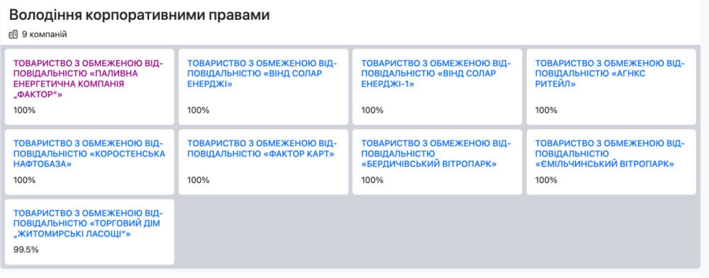 Станом на сьогодні мати Сергія Мотрона Тищенко володіє на 97,01% компанією ТОВ «ТІС-КОМПАНІ» заснованою у 2020 році. Інший засновник на 2,99% – це дочка Тищенка Марія. Дана компанія є повноправним власником 8-и компаній з орбіти так званої групи «Фактор» і має 99,5% корпоративних прав «Житомирських ласощів».